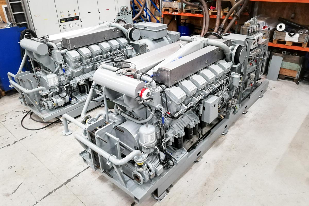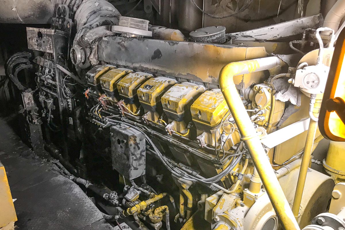 2 x Mitsubishi S12R generator sets fully restored by West Diesel following a major engine room fire aboard a large cargo vessel.